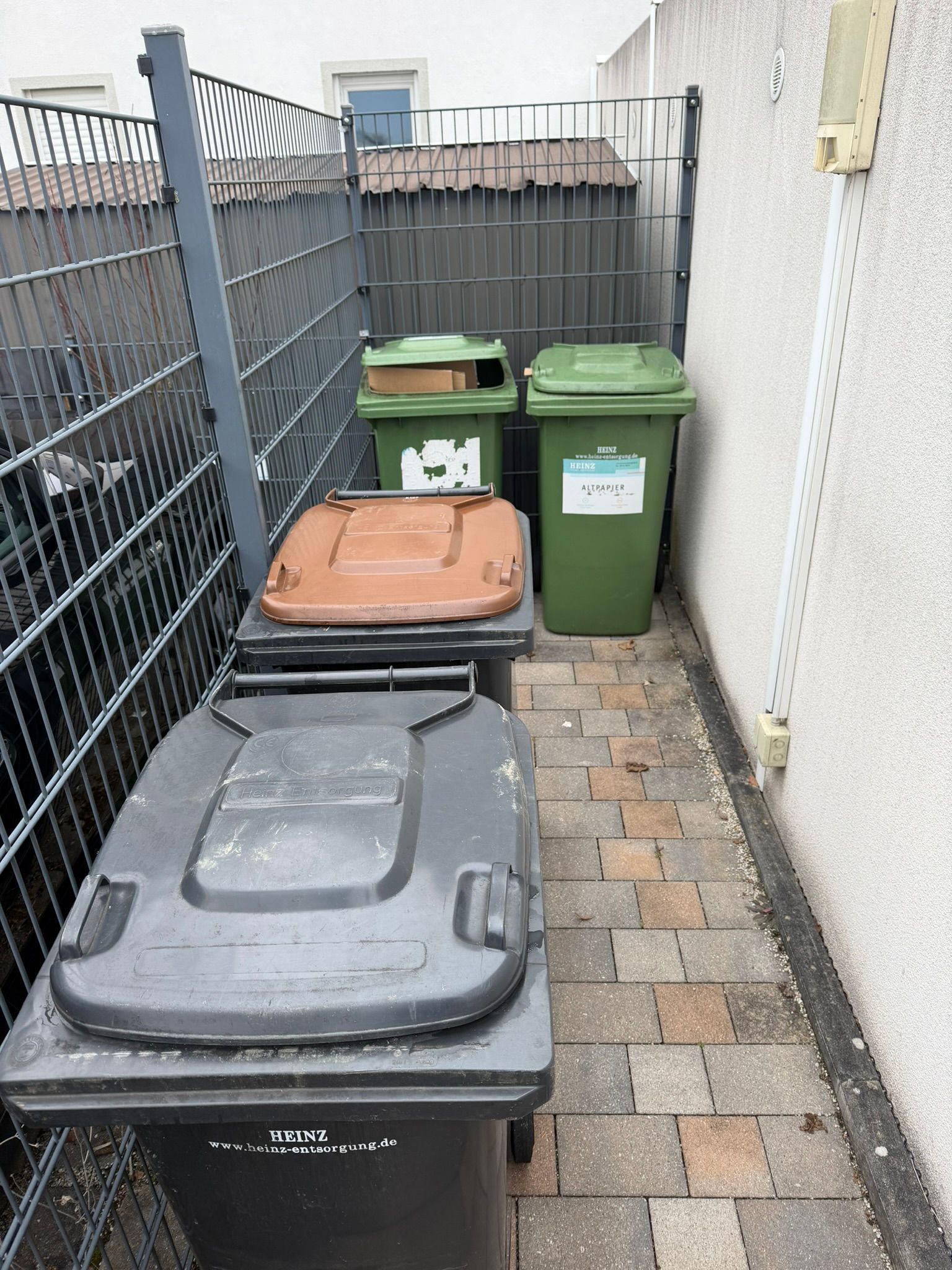 Hinter der Tür finden Sie alle Mülltonnen für die Ferienwohnung.